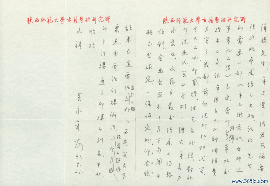 2004年“国度清史纂修工程”委托我主办的形状《清东谈主著述总目》开工。这时候《四库存打算注》还莫得终末完成。为了不迟延,我加速速率,于2005年完成了《标注》写定责任。上去独创之初的1992年,仍是14个岁首了。我又写信请黄先生写序。2005年10月14日黄先生函:“泽逊先生赐鉴:手示奉悉。大著序言草就,嘱东谈主用电脑印出清本寄上,不知尚合用否?年今岁已届八十,无力从事学术研讨,惟念念留点回忆录之类,亦守旧尚未下笔也。肃此,敬颂著祺。黄永年顿首。二〇〇五年十月十四日。”我的书2007年才由上海古籍出书社出书,而黄先生2007年1月16日牺牲,莫得看到这部书的出书,是一个很大的缺憾!